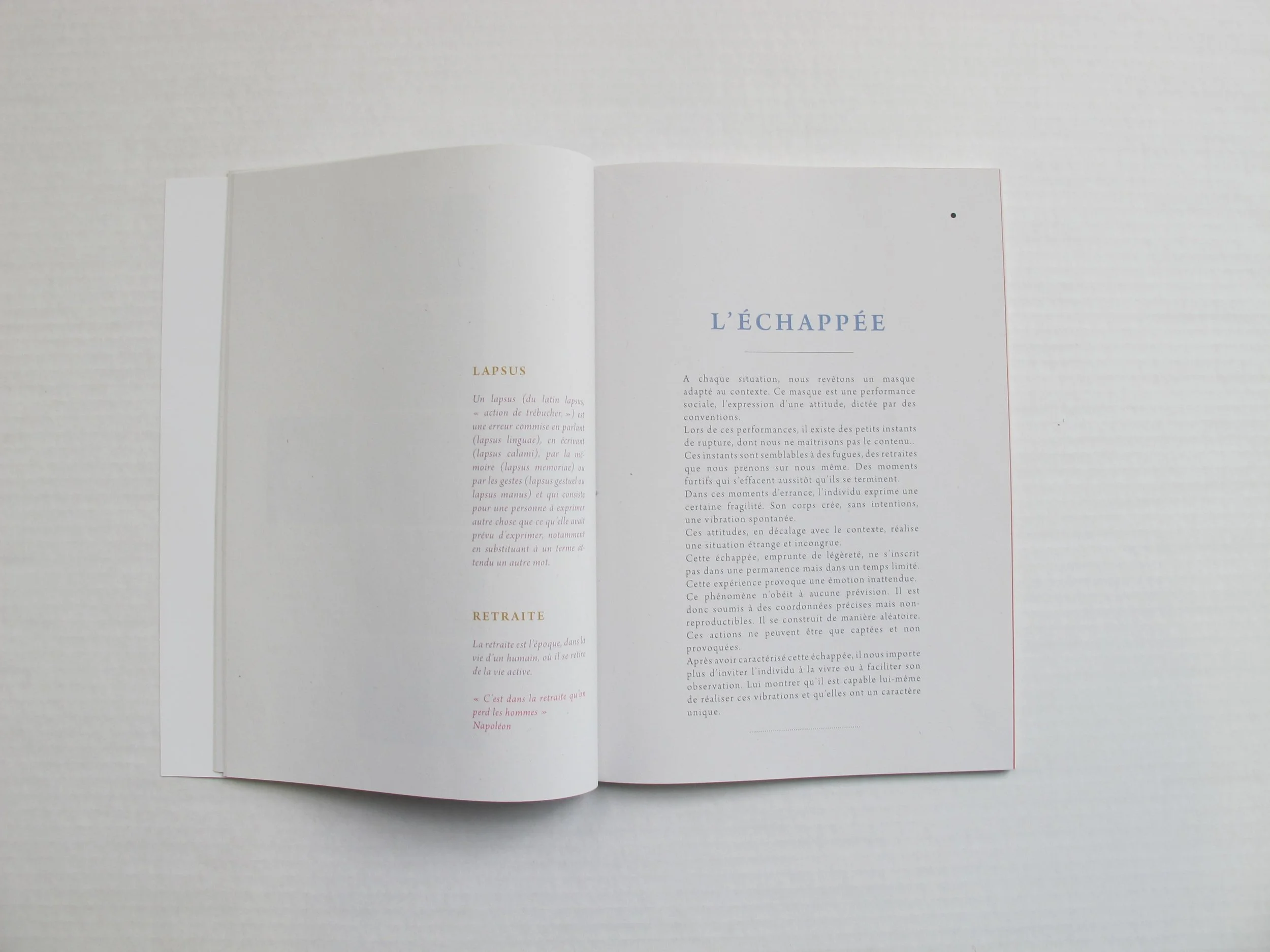 L’échappée belleWorkshop réalisé à l’École Camondo sur le thème : l’inattendu. Édition format A5 Print 〰️ Graphisme 〰️ Print 〰️ Graphisme 〰️ Print 〰️ Graphisme 〰️ . Projet suivant